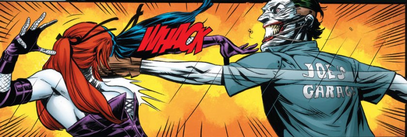 Un ejemplo sería cuando después de arrojarla al otro lado de la habitación, le toca la mejilla con ternura y le sonríe (Batman: The Animated Series, episodio 1–51, “The Man Who Killed Batman”, 1993), otro sería cunado después de no haberla matado el Joker le sonríe y le dices que es estupenda (Batman: The Animated Series, episodio 2–07, “Harlequinade”, 1994). En un momento de abuso en el que ella está muy molesta, él le dice: «¿ayudaría si dijera que lo siento?» (Batman: Harley Quinn #1, 1999).